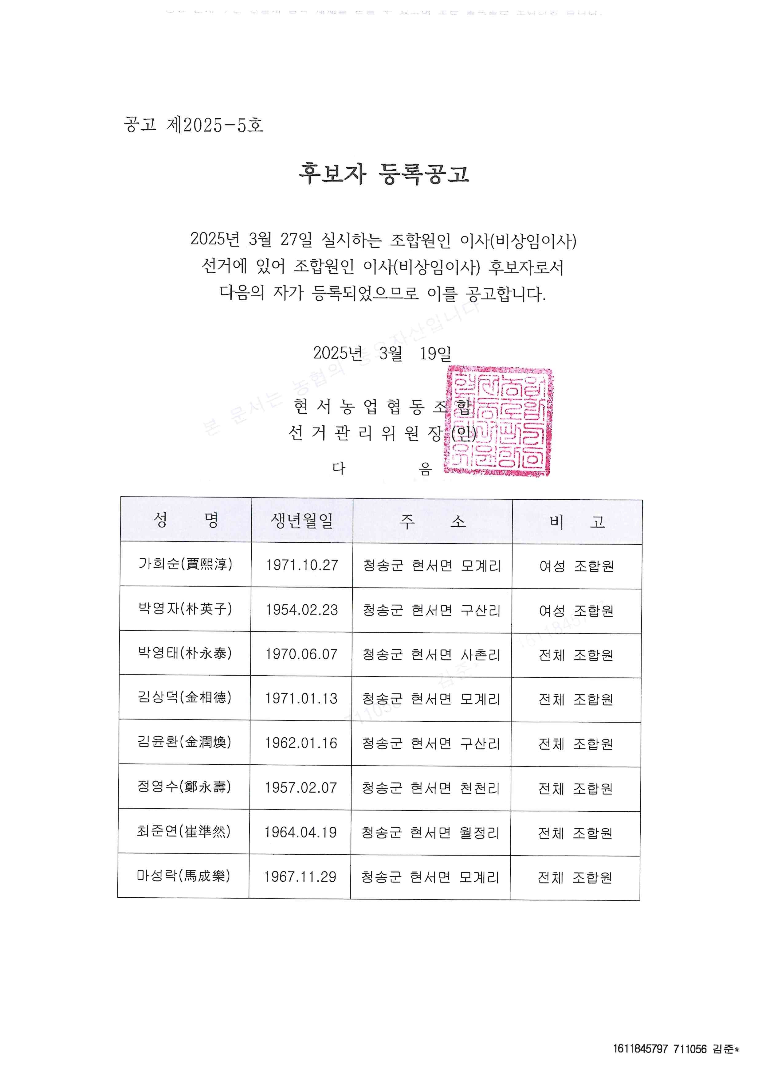 2025³â3¿ù27ÀÏ ½Ç½Ã À̻缱°Å Èĺ¸ÀÚµî·Ï °ø°í