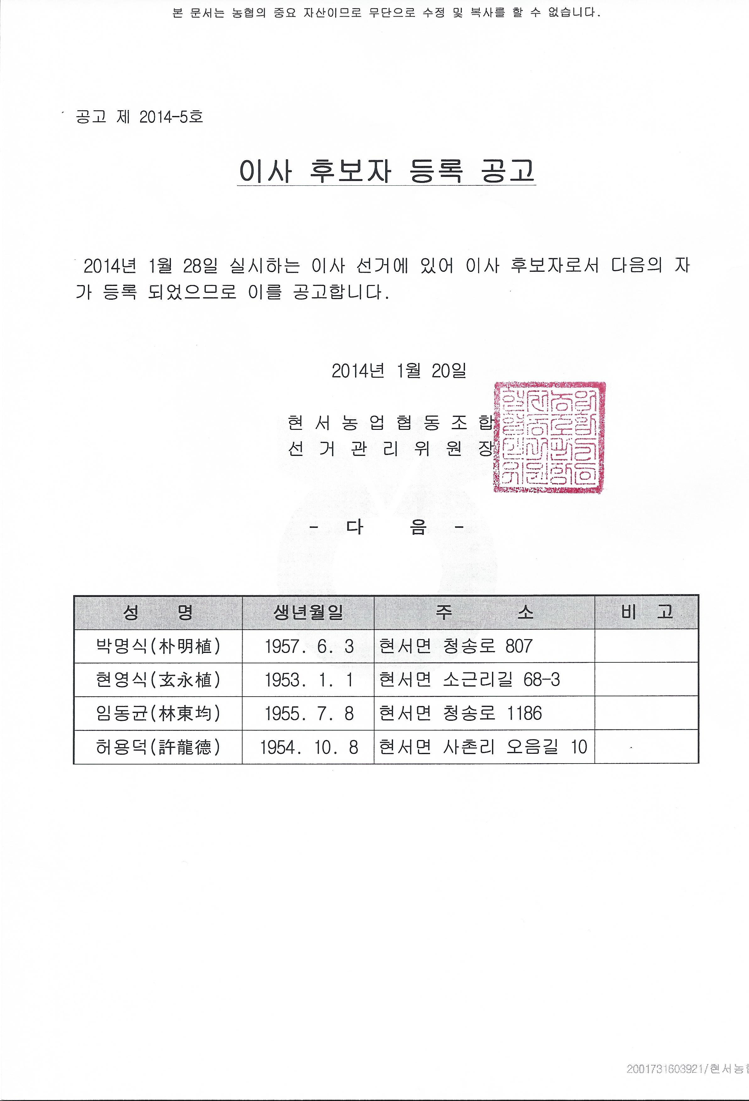ÀÌ»ç Èĺ¸ÀÚ µî·Ï °ø°í